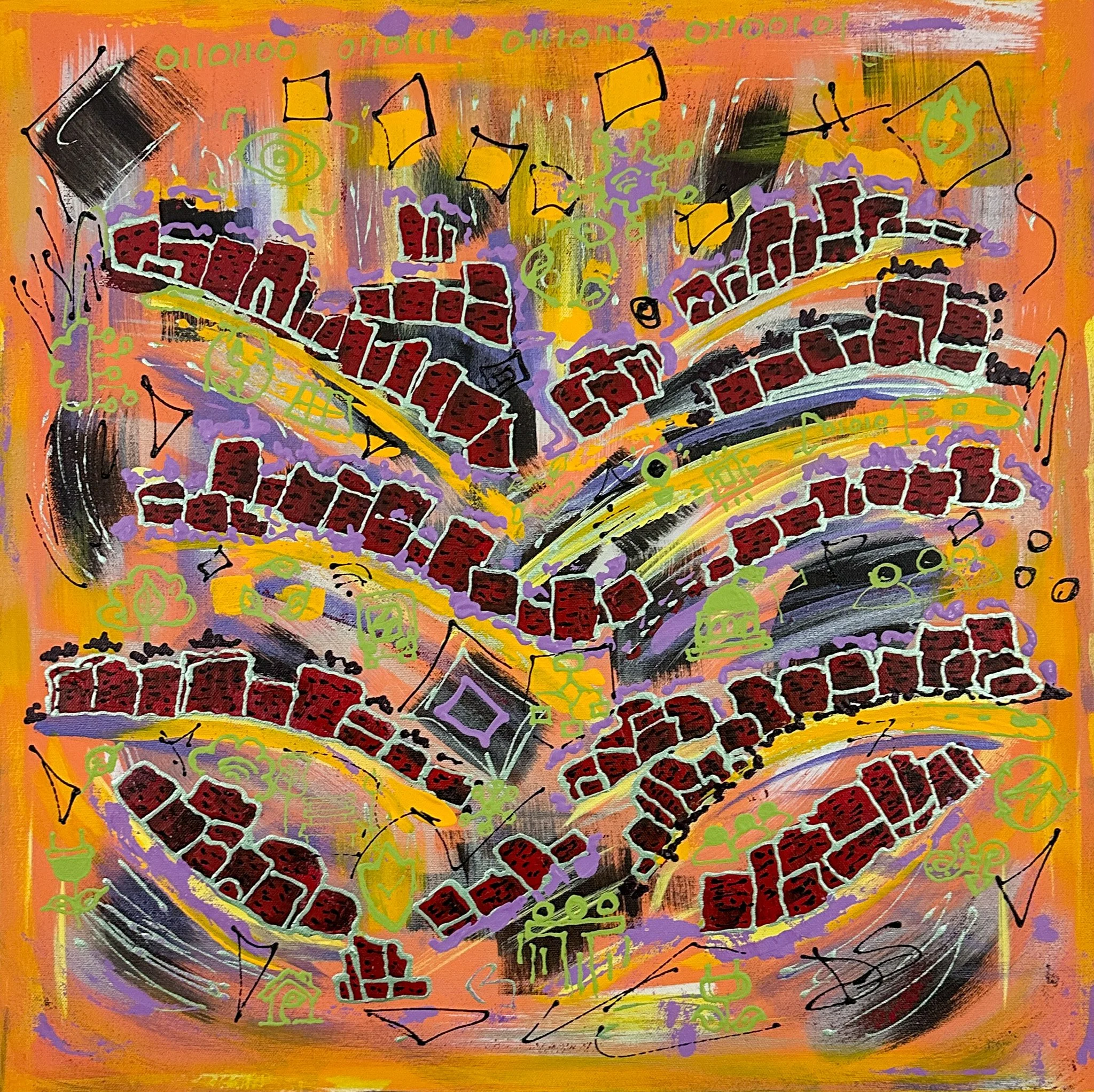 In creating this piece, I indulged in abstract expressionism to portray the swirling dynamics of modern urban growth. Through the flurry of bold reds and deep purples set against vibrant yellows, I sought to capture the essence of a burgeoning smart city, pulsating with life and digital interconnectivity. The symbols and scribbles represent the coded language of progress, evoking a sense of energy and the inevitable transformation of landscapes in the wake of technological advancement. This painting pulses with the vibrant energy of innovation and change, perfect for adding a touch of compelling dynamism to any space.